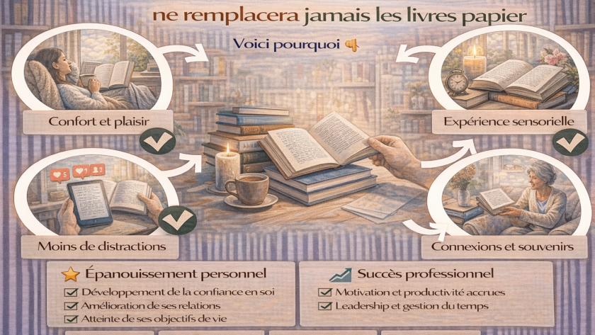 En définitive, bien que le numérique offre des avantages indéniables et continue de s’intégrer dans nos habitudes de lecture grâce à sa portabilité et sa facilité d’accès, il ne parvient pas à reproduire l’ensemble des qualités intrinsèques du livre papier. La combinaison de sa valeur culturelle, de l’expérience sensorielle qu’il procure et de sa praticité sans dépendance technologique assure au livre imprimé une place durable et irremplaçable dans le paysage de la lecture contemporaine.
