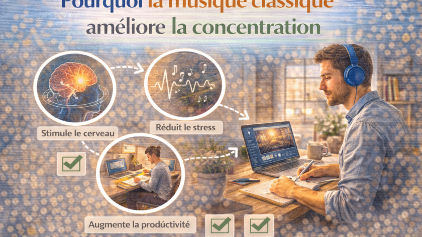 Depuis des siècles, la musique classique occupe une place prépondérante dans la culture et l’éducation. Composée par des maîtres tels que Mozart, Bach et Beethoven, cette forme musicale a traversé les époques, influençant profondément notre façon de penser et de ressentir. Mais au-delà de sa beauté artistique, la musique classique possède des vertus insoupçonnées pour notre esprit. De nombreuses études scientifiques ont démontré que l’écoute de compositions classiques peut significativement améliorer la concentration et favoriser une meilleure productivité. Cet article explore les mécanismes par lesquels la musique classique agit sur notre cerveau et pourquoi elle est devenue un allié incontournable pour ceux qui cherchent à optimiser leur performance intellectuelle.