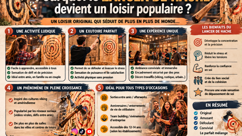 Le lancer de hache connaît un véritable essor ces dernières années, s’imposant comme un loisir incontournable en France. Originaire d’Amérique du Nord, cette activité audacieuse a su conquérir le cœur des Français grâce à son accessibilité et à l’adrénaline qu’elle procure. Installé principalement dans des structures indoor, le lancer de hache offre une échappatoire idéale au stress quotidien, permettant aux adeptes de se défouler tout en développant leur précision et leur concentration. De Genève à Rouen, en passant par Pau et Saint-Étienne, de nombreux centres spécialisés ont vu le jour, témoignant de la popularité grandissante de ce sport atypique. Que ce soit pour une sortie entre amis ou pour une activité de team-building originale, le lancer de hache s’affirme comme une tendance durable dans le paysage des loisirs modernes.