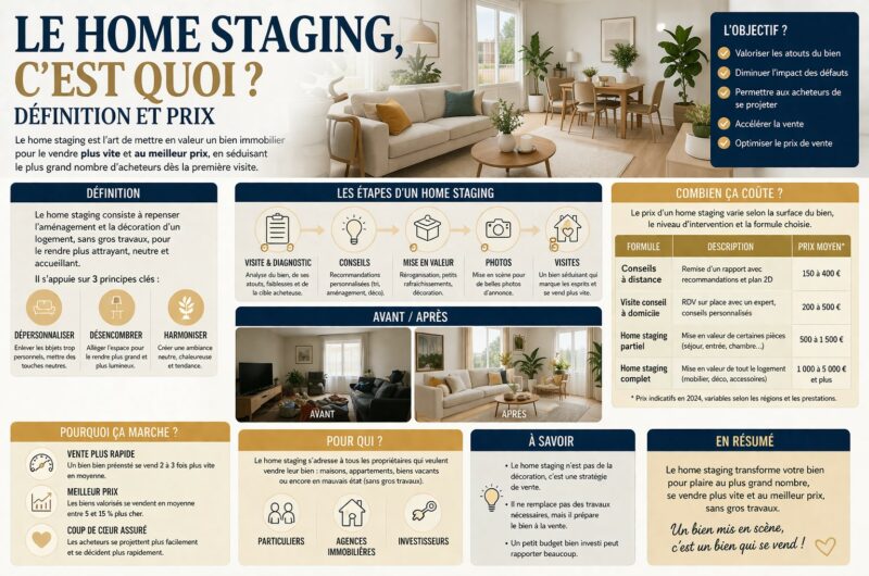 En un petit article, découvrez ce qu’est le home staging et en quoi il révolutionne la vente de biens immobiliers de nos jours. Quels sont les prix et tarifs d’une telle prestation ? A quoi ça sert et vomment vous pouvez y songer dans le cas de la vente de votre maison, votre appartement ou tout autre bien.