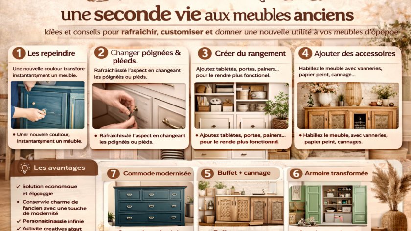 Donner une seconde vie aux meubles anciens est bien plus qu’une simple tendance de décoration. C’est un acte de créativité et de durabilité qui permet non seulement de préserver des pièces au charme intemporel, mais aussi de réduire notre empreinte écologique. Depuis des artisans passionnés à Baud et Languidic, jusqu’aux multiples astuces innovantes pour recycler et relooker, cette pratique s’inscrit dans une dynamique de respect de l’environnement et de préservation du patrimoine. En réinventant vos vieux meubles, vous participez à une démarche responsable et esthétique, alliant histoire et modernité pour un intérieur unique et personnalisé.
