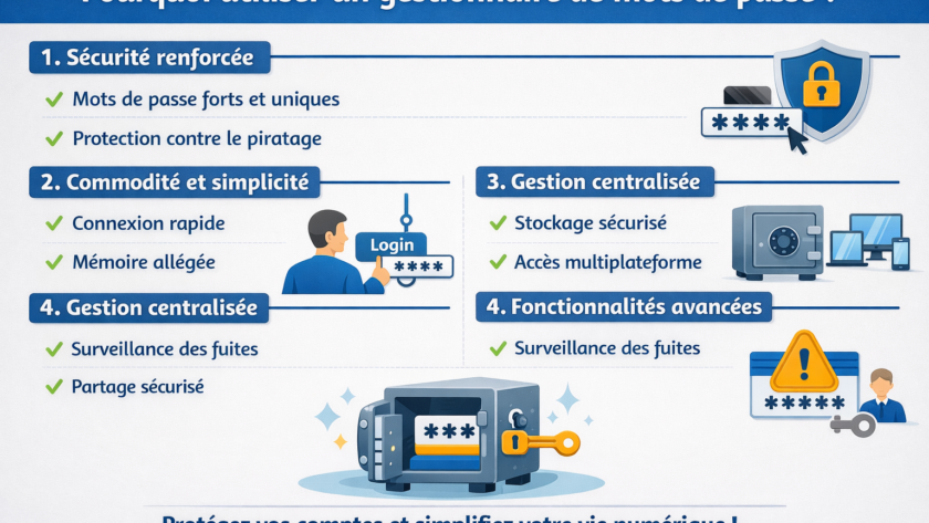 Dans un monde numérique où les cyberattaques se multiplient, la sécurisation des informations personnelles et professionnelles devient cruciale. Un gestionnaire de mots de passe offre une protection renforcée en permettant aux utilisateurs de générer et de stocker des mots de passe uniques et complexes pour chaque compte en ligne. Cette unicité réduit considérablement le risque de compromission multiple en cas de fuite d’un mot de passe. De plus, les gestionnaires de mots de passe utilisent des technologies de chiffrement avancées pour protéger les données stockées, assurant que seules les personnes autorisées peuvent accéder aux informations sensibles. En adoptant un gestionnaire, les utilisateurs peuvent se prémunir contre les tentatives de piratage, le vol d’identité et d’autres formes d’intrusion numérique.